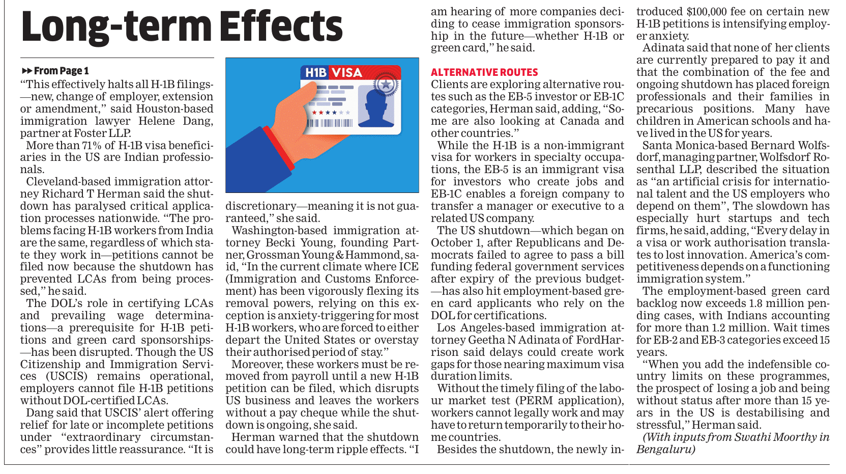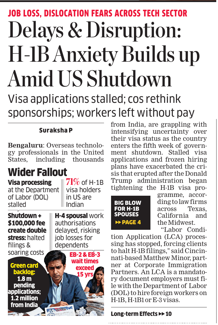 "Delays & Disruption: H-1B Anxiety Builds up Amid US Shutdown", The Economic Times, India